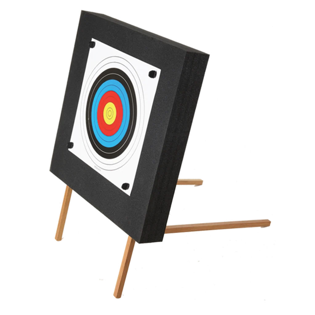 This target from EK Archery is designed to to stop low to medium powered recurve and compound crossbows and comes complete with wooden legs that allow the target to be used free standing. Target Measures: 60cm x 60cm x 10cm