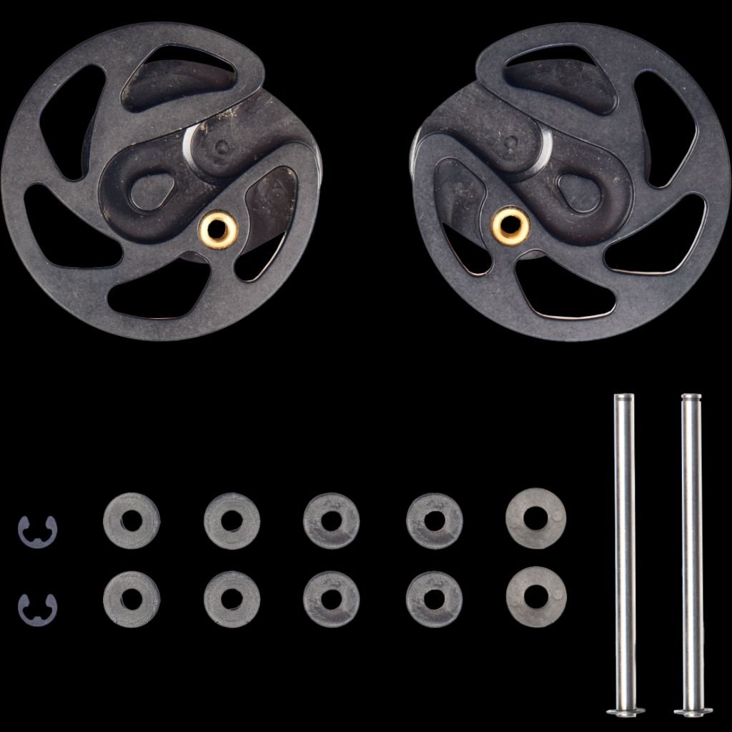 This Man Kung cam set consists of 2 cams, 2 axles and all the necessary rings and bushings to replace the cams of your compound crossbow. This set is suitable for the following crossbows: Man Kung MK-350 Man Kung MK-380 Man Kung MK-400
