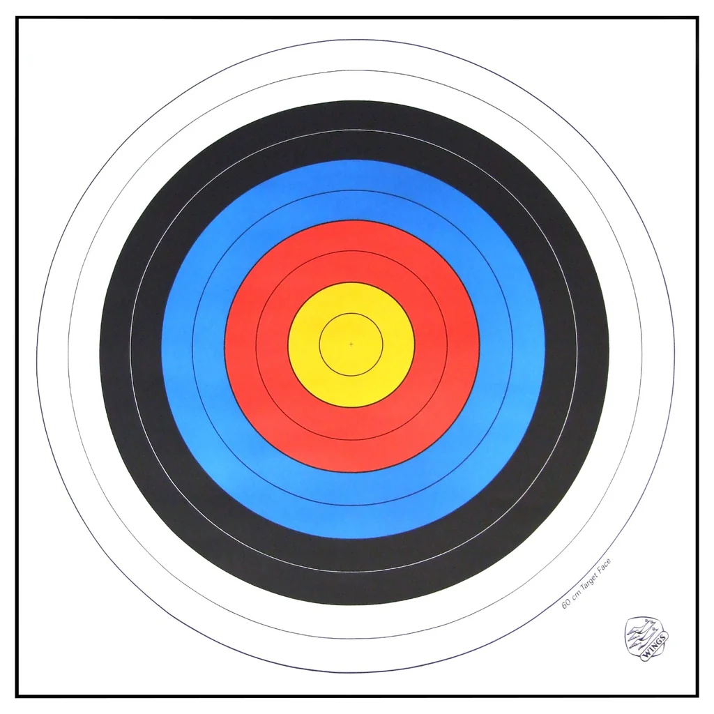 The Man Kung paper target face FITA is made of reinforced paper and features the official FITA competition mark. This target is 60 cm wide and 60 cm long and is therefore ideal for use in combination with the Man Kung compressed straw target board. Usually, the following scoring is used (from outside to inside): White: 1 and 2 points Black: 3 and 4 points Blue: 5 and 6 points Red: 7 and 8 points Yellow: 9 and 10 points