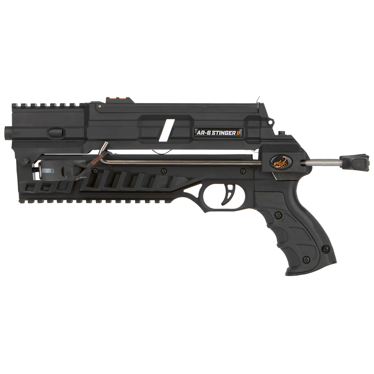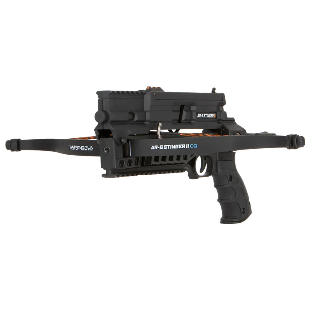 The Steambow AR-6 Stinger II Compact is a repeating, magazine-fed crossbow with a 6-arrow capacity. Its compact size and lightweight design make it ideal for quick firing and one-handed operation. Like other Stinger II models, it is highly customizable and compatible with a wide range of AR Series accessories. Crafted from high-quality glass-infused polymer, the Stinger II is durable, reliable, and accurate up to 25 meters.