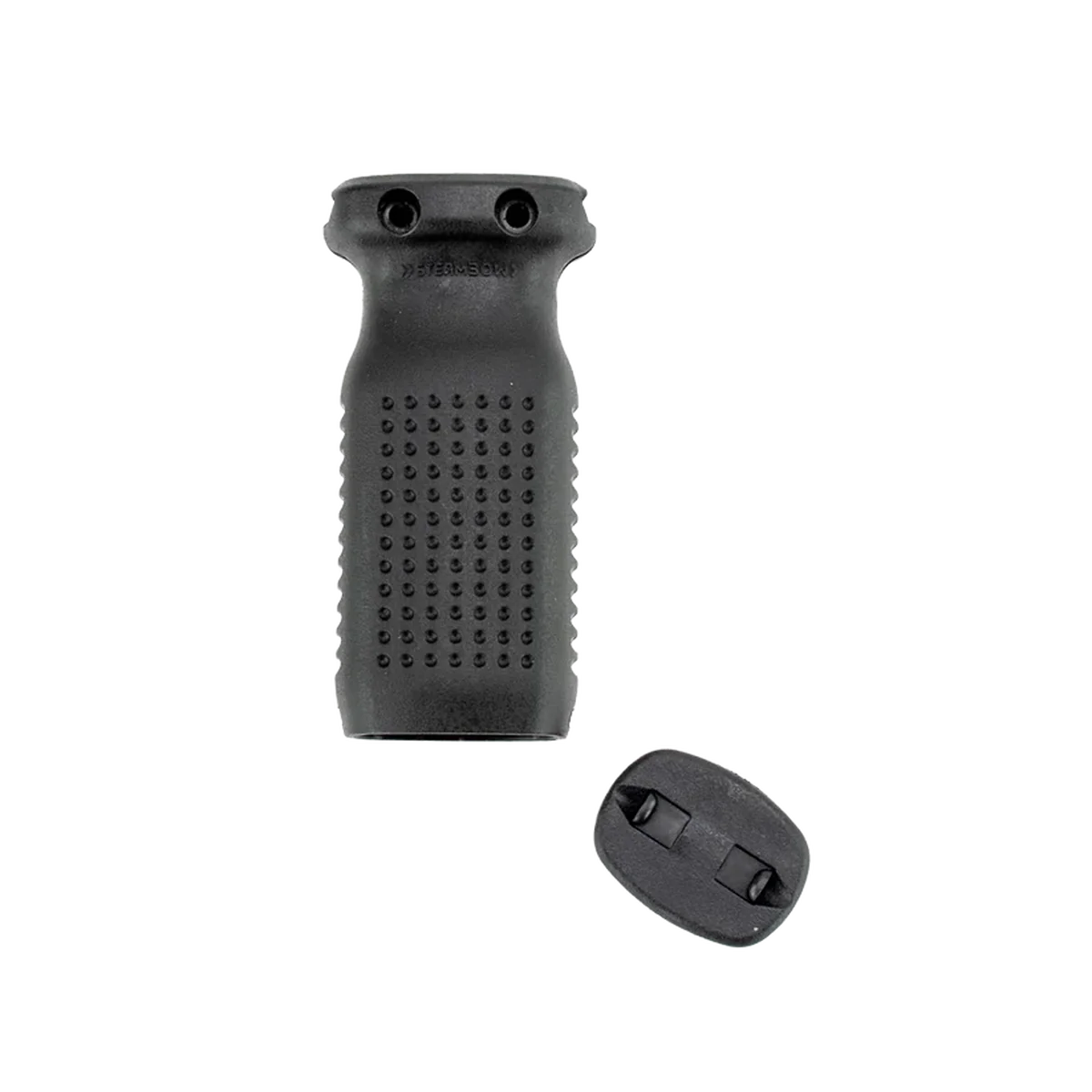Optimally designed for use as a cocking grip for a repeating crossbow, Steambow have achieved this by significantly reinforcing the attachment of the grip to the crossbow and optimizing the cross-section. There is also a compartment on the inside for stowing a spare string or a stringing aid.